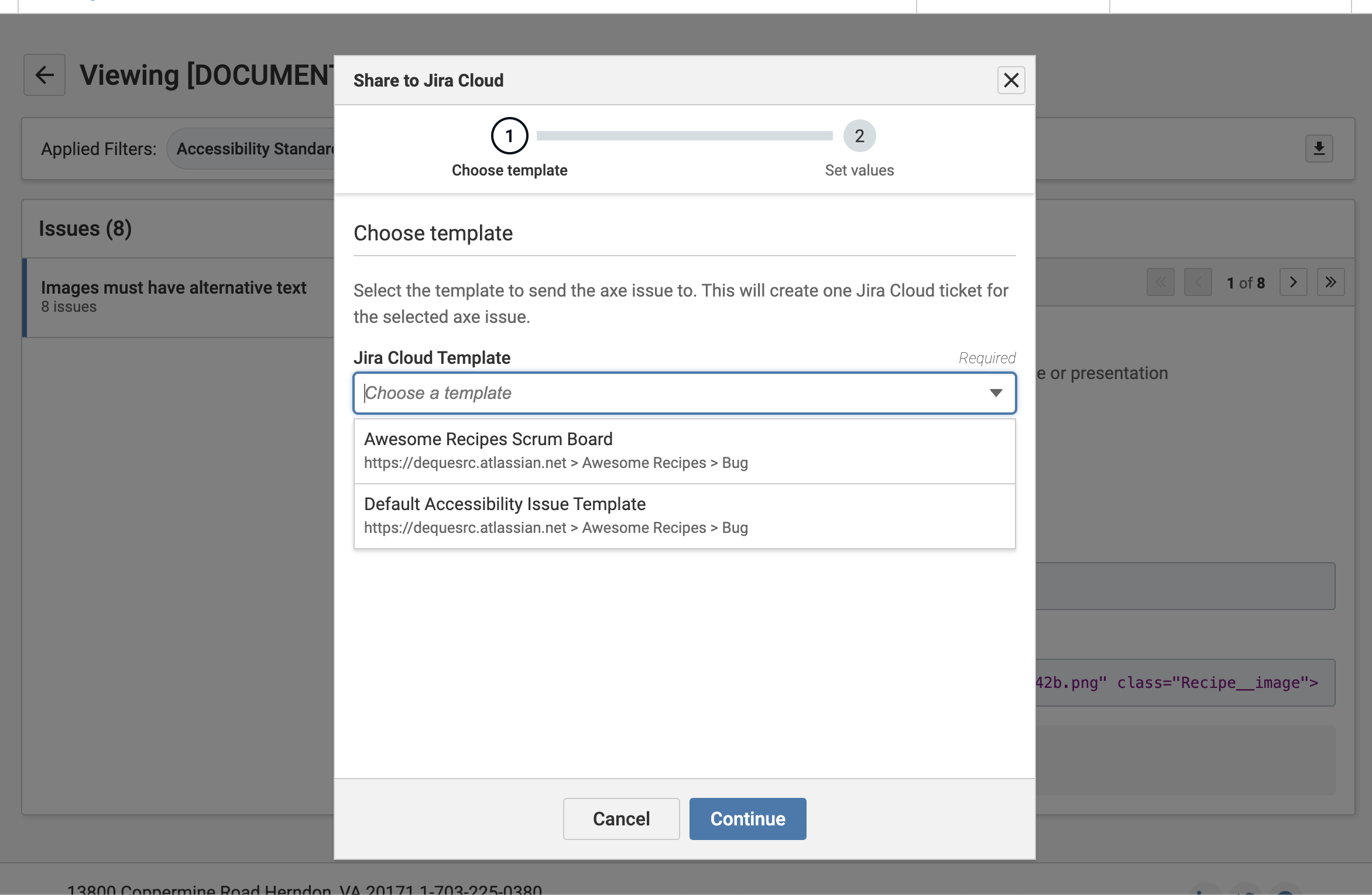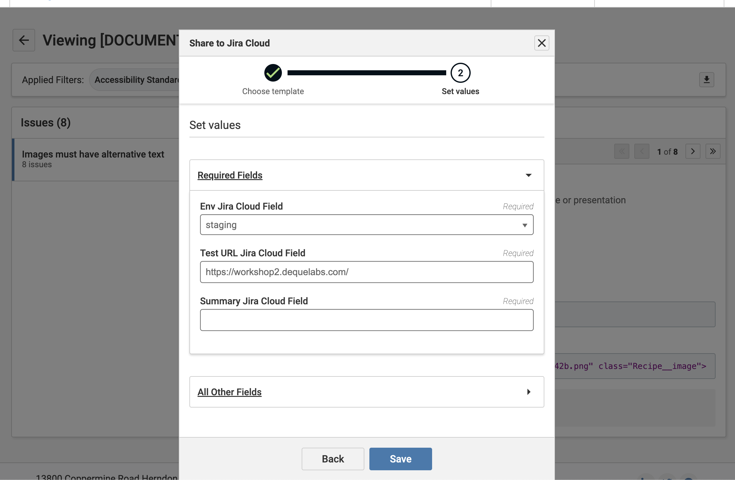 Sending Issues from axe DevTools Extension to Jira
