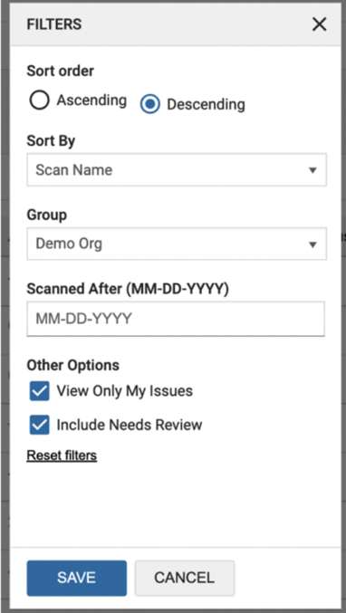 The Experimental View now comprises - Groups and Scans. Groups are known as Organizations in the Classic View, and Scans are known as Projects in the Classic View
