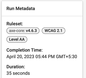 This section displays the metadata of the last run scan. The information contains the rulesets applied while scanning, completion date and time, and the duration for which the scan was run.