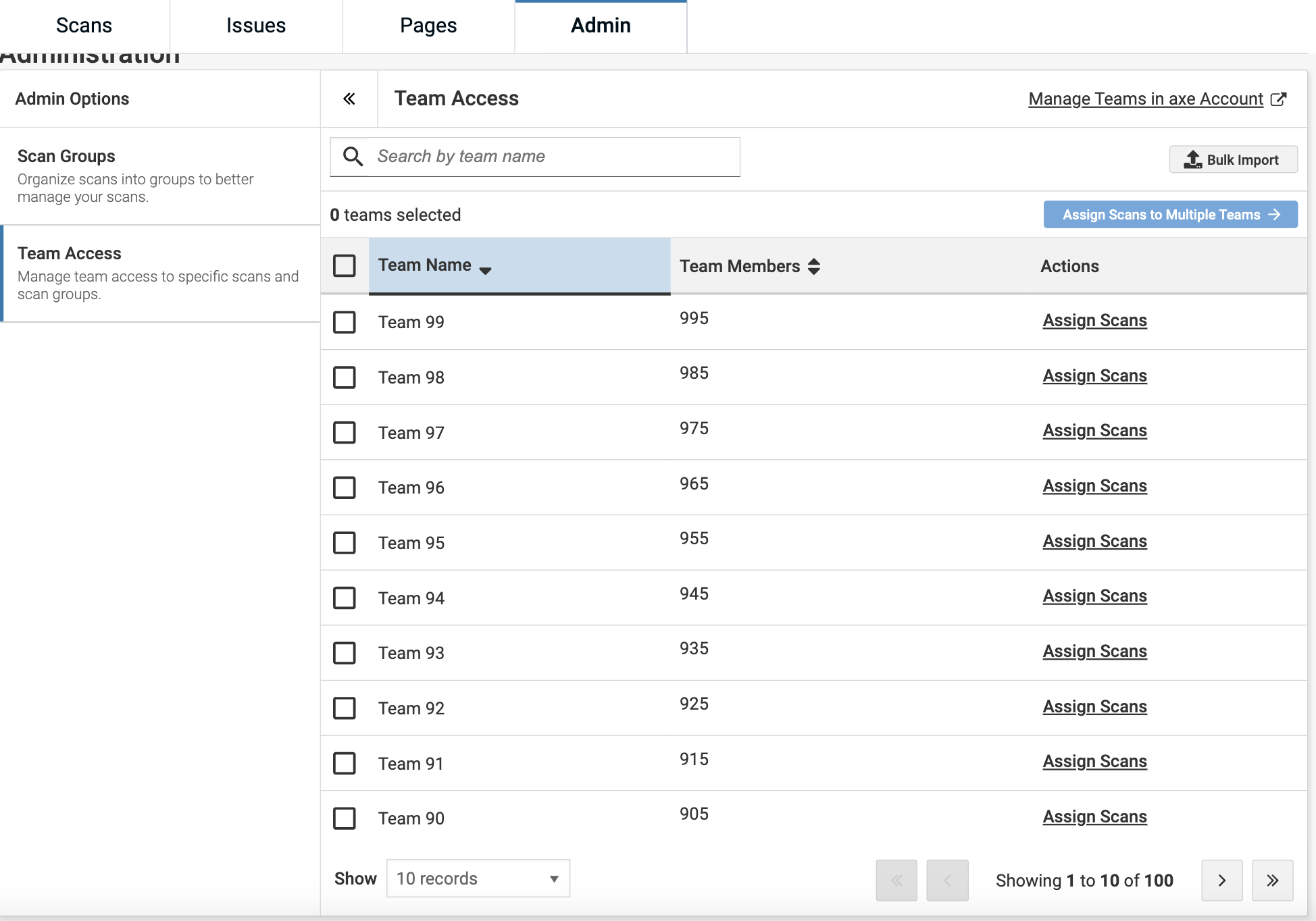 - Weisen Sie Scans und Scangruppen Teams zu.