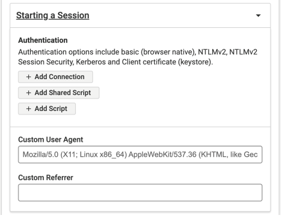 Enter a Custom Referrer if your site requires a redirect to be scanned. Sometimes, specifying a referrer is required for security purposes, and the scanning tool will need to include referrer information in the URLs it scans. Other times, the page content that displays may depend on the referrer page. Use this field to change the default referrer set in the request headers.