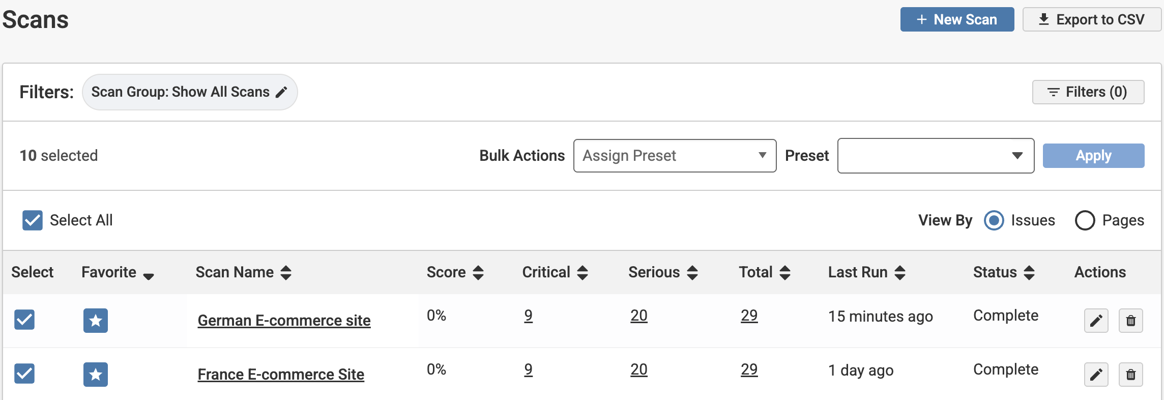 - Gli amministratori delle scansioni possono selezionare "Assegna preset" per modificare le impostazioni per più scansioni contemporaneamente.