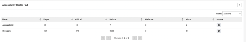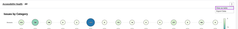 Use the kebab menu option (three dots) on the right of the screen and select View as Table to view accessibility health as a table.