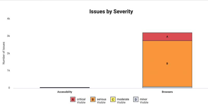 This chart captures the total number of accessibility issues captured at the selected level of hierarchy by issue severity. Currently supported issue severity levels are: