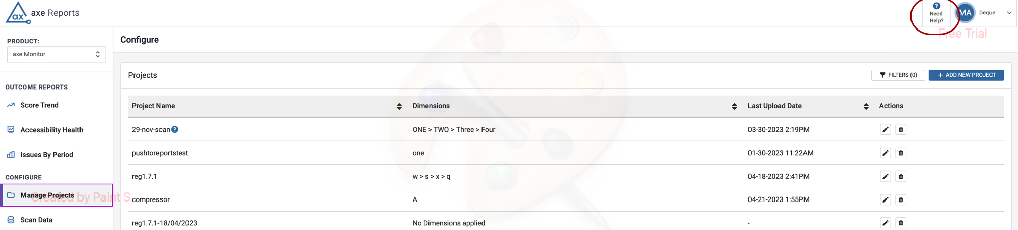 Axe Reports has made an update to the column name Data Updated in both the Manage Projects and Manage Scripts screens. The columns are now called Last Upload Date. This name change makes it clear to the user that the information in the column is regarding the last date and time when the project and script data were uploaded.