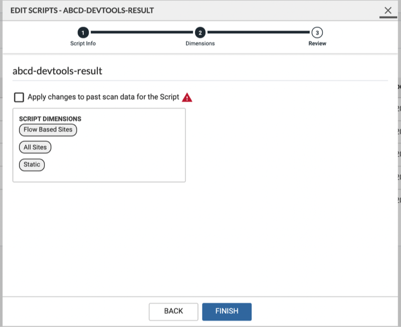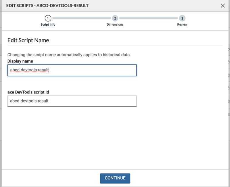 Administrators can also edit the Dimensions they’ve defined for the scripts, as needed due to changes in organizational structure. This feature is also useful to track accessibility issues reported by various teams that fall under different accountability structures.