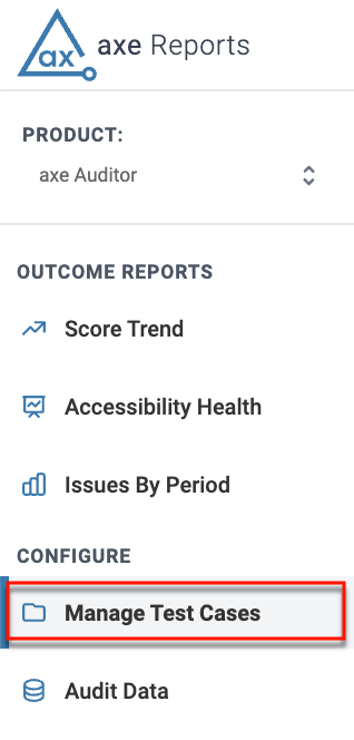 - Select the Manage Test Cases option from under the Configure section on the left hand corner of the screen.