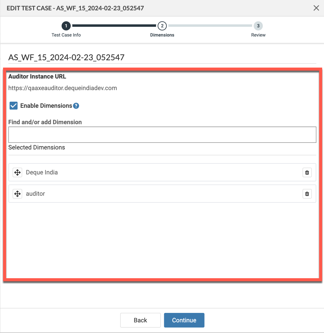 Test Case Dimensions are editable, administrators can update defined dimensions as needed due to changes in organizational structure. This feature is also useful to track accessibility issues reported by various teams that fall under different accountability structures.